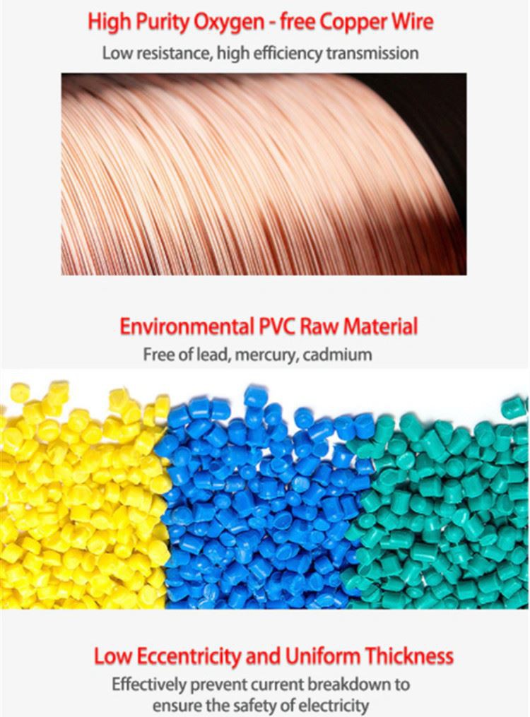 4. Ühesoonelises ümbriseta kaablis on suurepärane 99,99% hapnikuvaba puhas vask, millel on madal takistus, väike võimsuskadu ja suurem energiasääst.